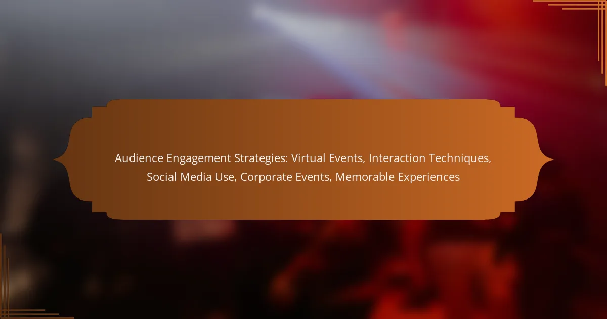 In today’s digital landscape, engaging audiences during virtual events is essential for creating memorable experiences. By utilizing interactive techniques and leveraging social media, event organizers can foster participation and build a sense of community, ensuring that attendees remain invested throughout the event. Thoughtful planning and innovative strategies are key to transforming a standard virtual gathering into an engaging and dynamic experience.